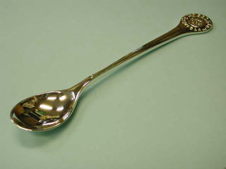 7㎜の角棒から打ち出してスプーンの形が見えてきました。 ヤスリ,キサゲ、砥ぎ、バフ磨き、彫りを経て完成しました。